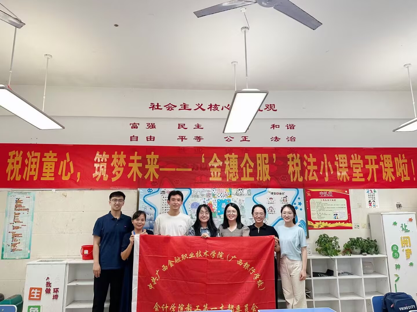 5月16日,万象城官网会计学院“金穗企服”团队赴南宁市桂雅路小学开展“税润童心、筑梦未来”职业教育周实践活动。通过“理论+情景+游戏”三维教学模式,创新开展青少年税法启蒙教育,50余名小学生在沉浸式体验中完成税收知识启蒙。会计学院副院长陈园带领“金穗企服”教师团队参与活动。