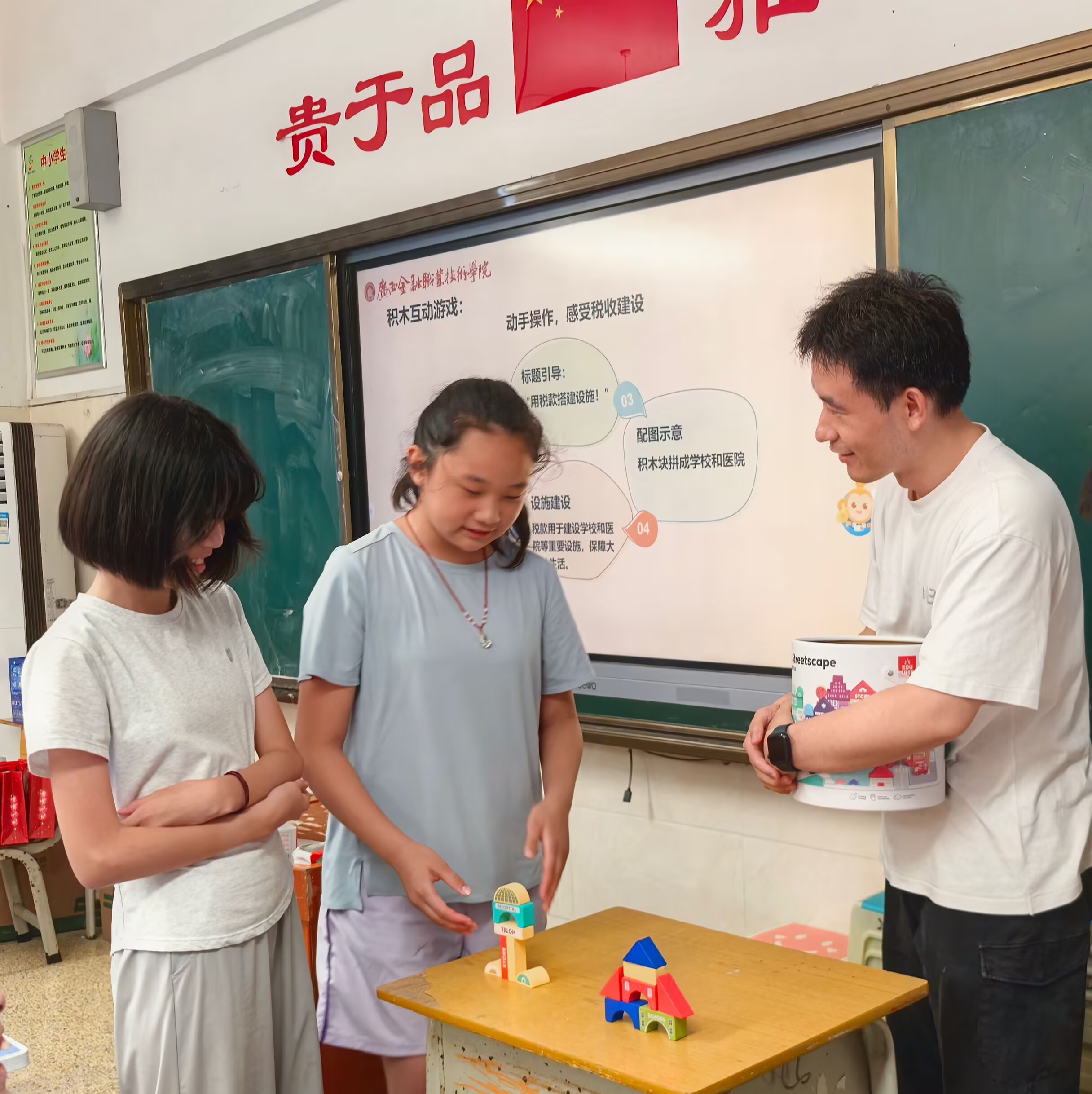 活动现场,教学团队精心设计“购物小票探税源”“积木搭建识税种”“税务小侦探”三大实践模块。通过分析文具购物小票中的税款去向,引导小学生发现日常消费中的税收元素;借助特制税收积木搭建校园模型,将增值税、个税等抽象概念转化为具象认知;在自编税收情景剧中,学生化身“税务小侦探”破解生活税务谜题,在游戏互动中掌握税收基本原理。