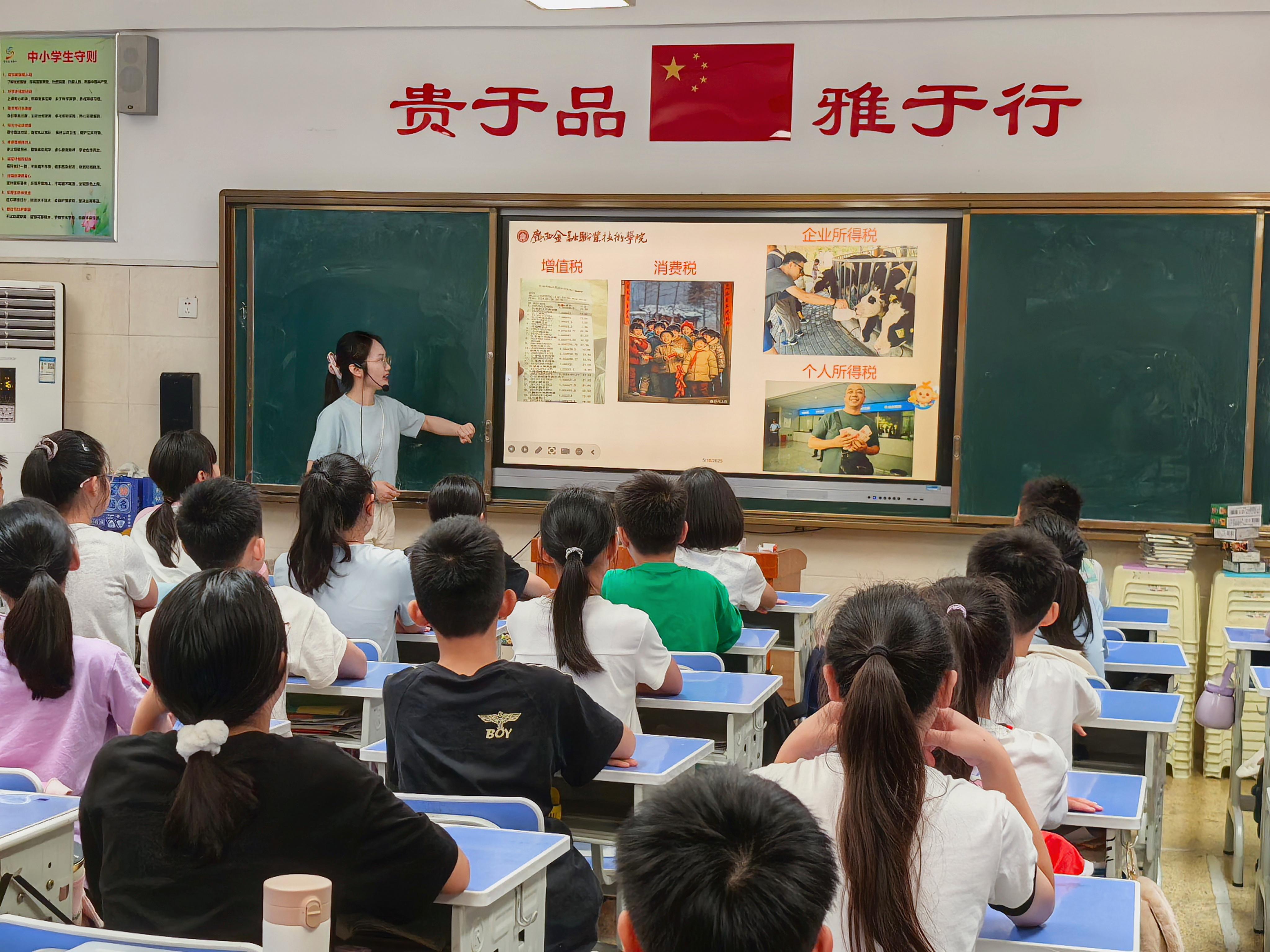 在总结交流环节,桂雅路小学负责此次活动的庞廷午老师高度评价:“这种寓教于乐的税法启蒙模式,既构建了职业院校与基础教育协同育人新范式,更在孩子们心中植入了税收法治的种子。”会计学院副院长陈园表示:“将高职《纳税实务》等课程转化为小学生能理解的启蒙课程,既是职教资源活化创新的实践,更是职业院校履行社会服务职能的重要体现。”