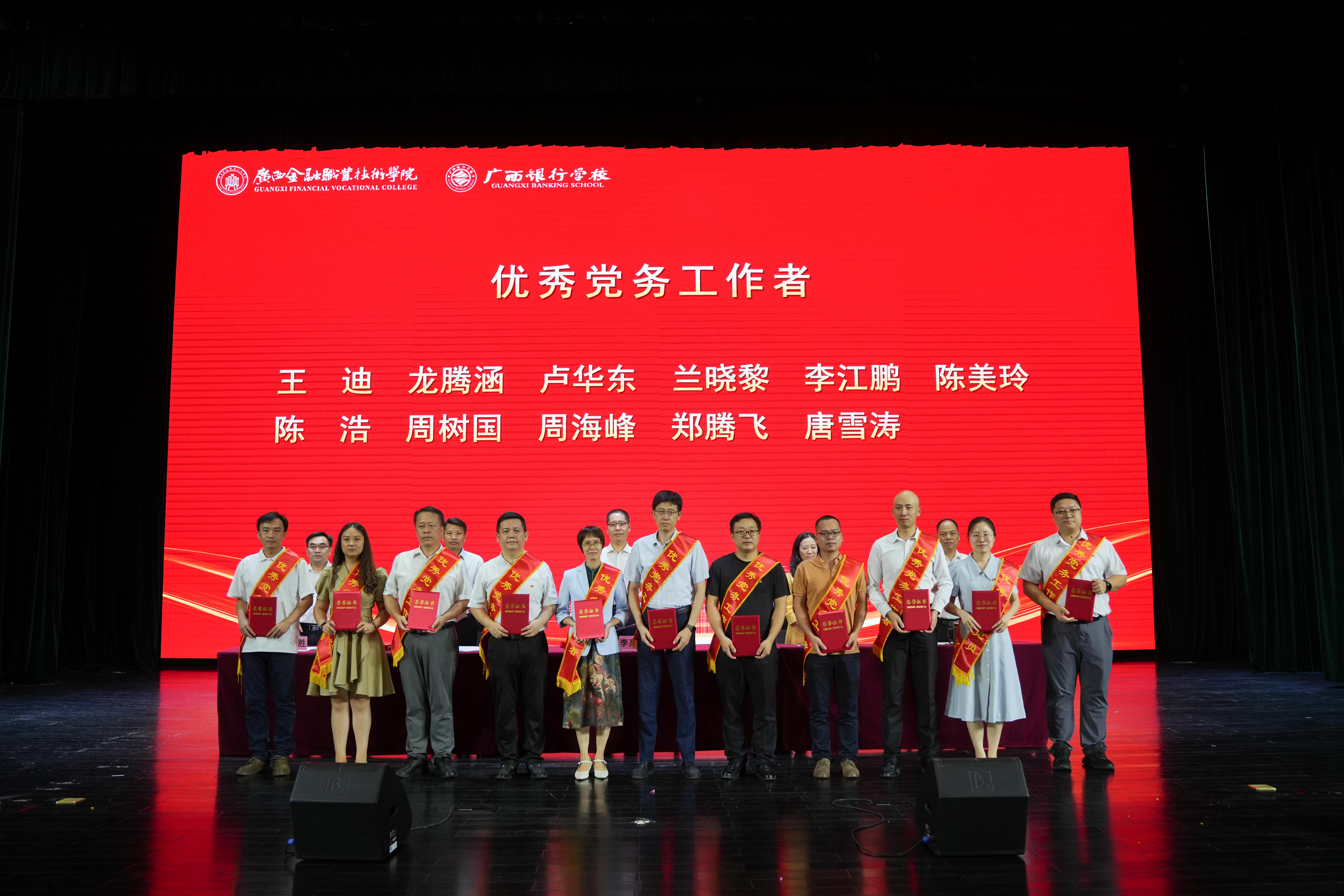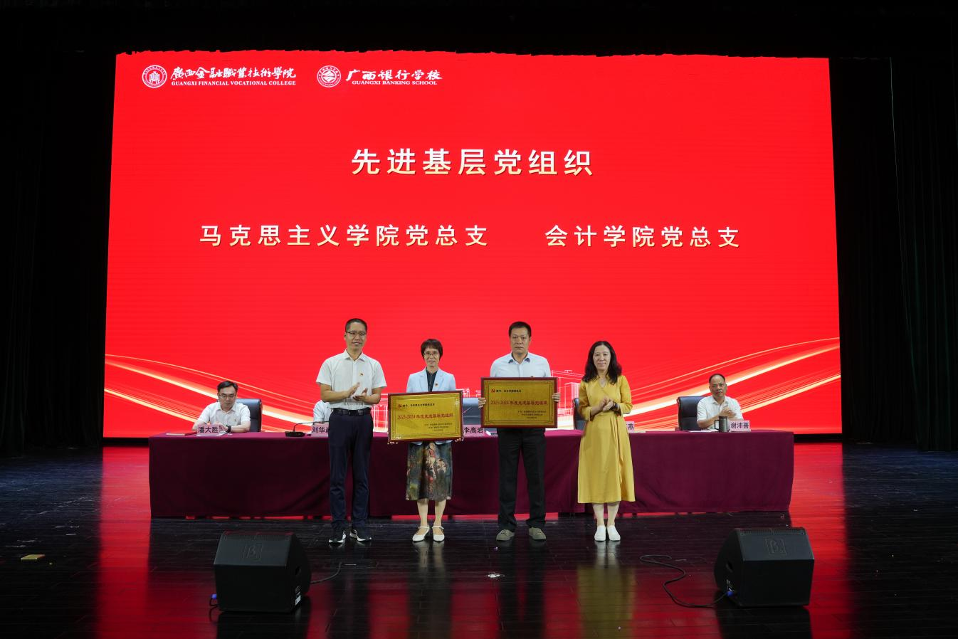 大会表彰了学校2023-2024年度先进基层党组织、优秀党务工作者、优秀共产党员,并为万象城官网“光荣在党50年”老党员颁发纪念章和荣誉证书。