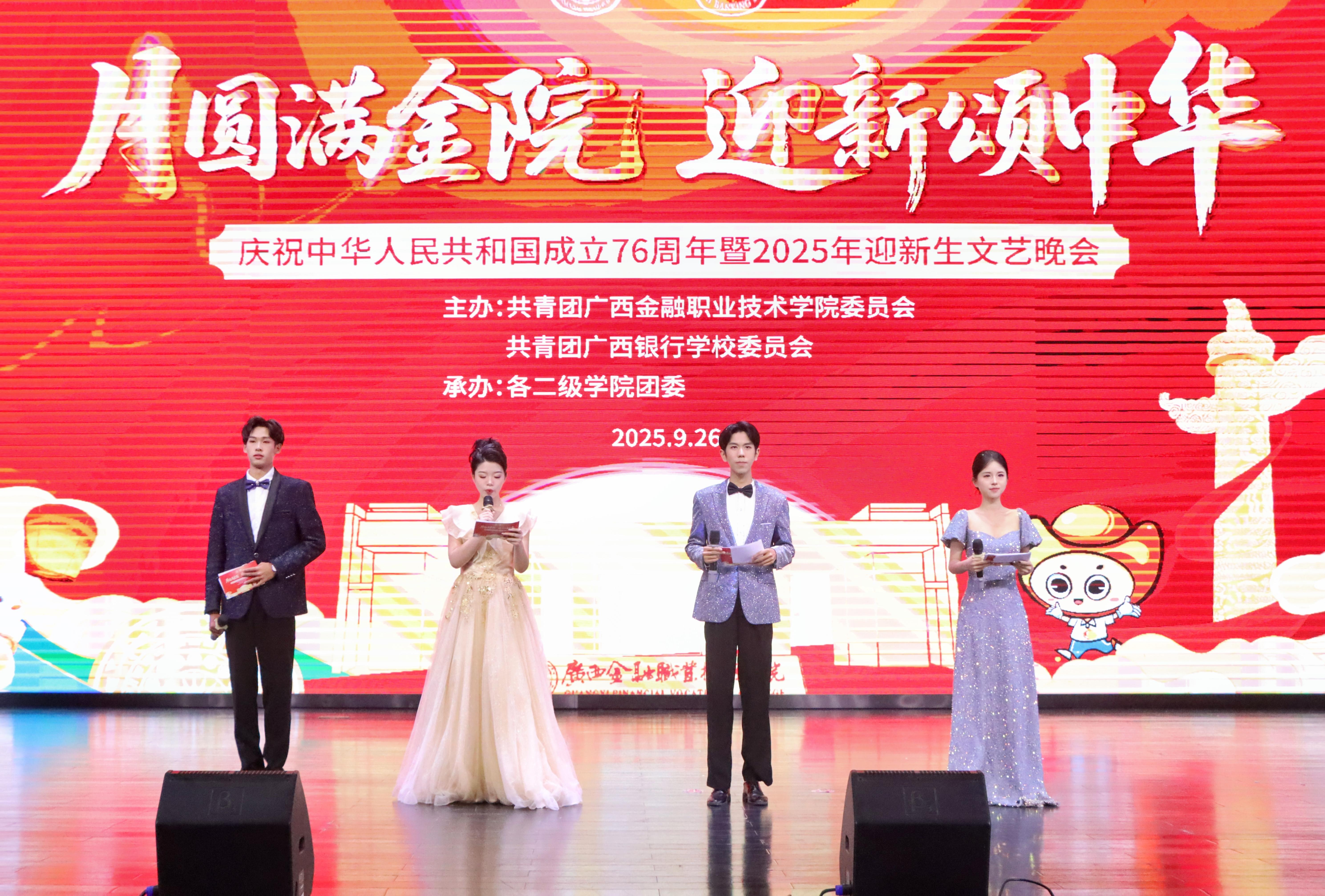 金秋送爽,喜雨润心。当中秋的皎洁月华邂逅国庆的璀璨荣光,当76载家国华章映照2025级新生青春的笑脸,一场承载家国情怀与迎新暖意的文艺盛宴,在金院悄然拉开帷幕。9月26日,万象城官网在国际会议中心举办“月圆满金院 迎新颂中华”庆祝中华人民共和国成立76周年暨2025年迎新生文艺晚会。