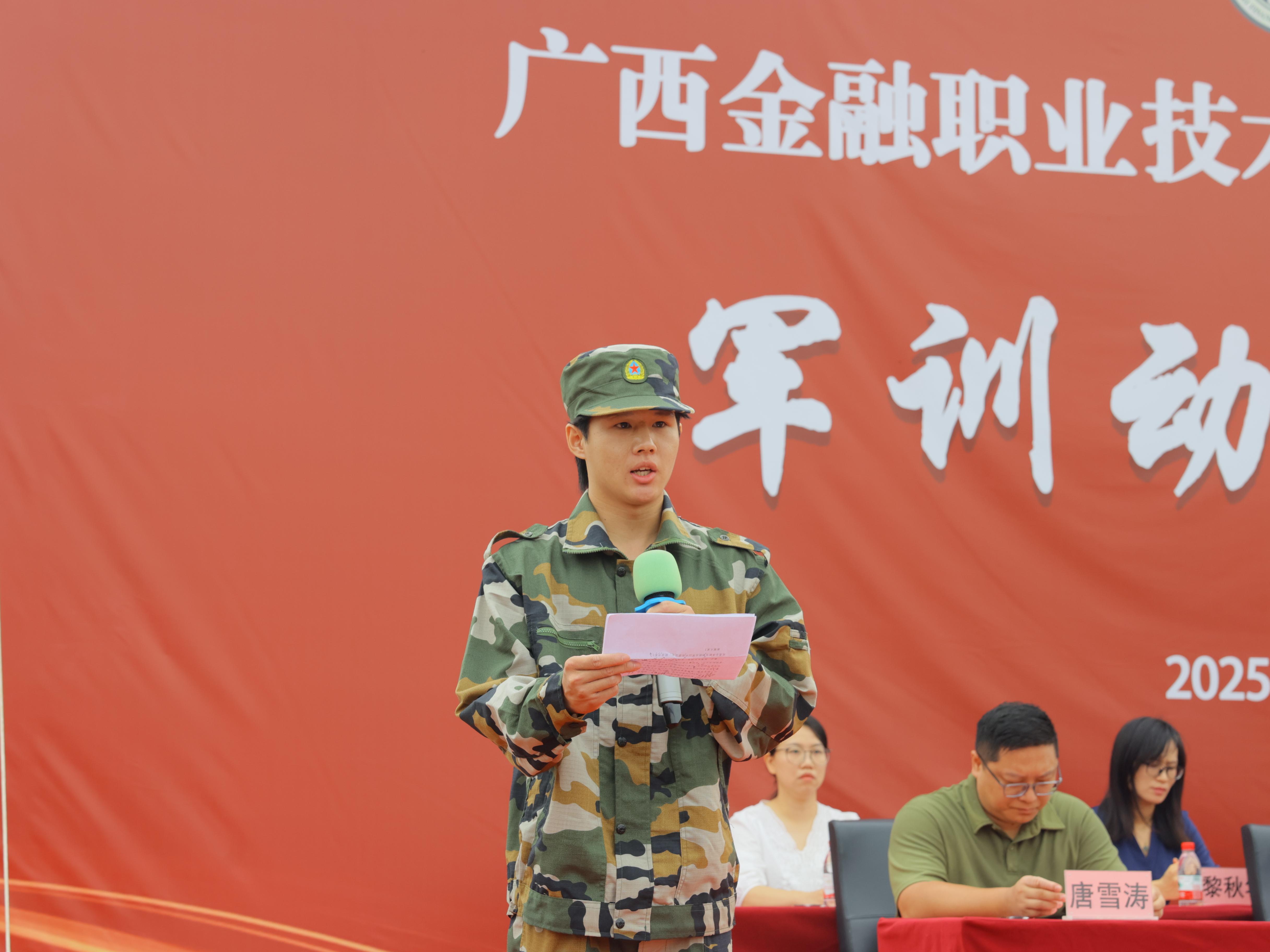文化与旅游学院高铁乘务2502班梁娅萱同学、金融学院金融服务与管理2502班刘靖铭同学作为学生代表发言,他们表示会在烈日下挺直脊梁,展现青春的朝气;在训练中互帮互助,凝聚集体的力量;在休息时交流分享,收获珍贵的友谊。我们要把军训中的收获转化为学习的动力,在awc77万象城官网的沃土上,书写属于我们这一代人的青春华章。