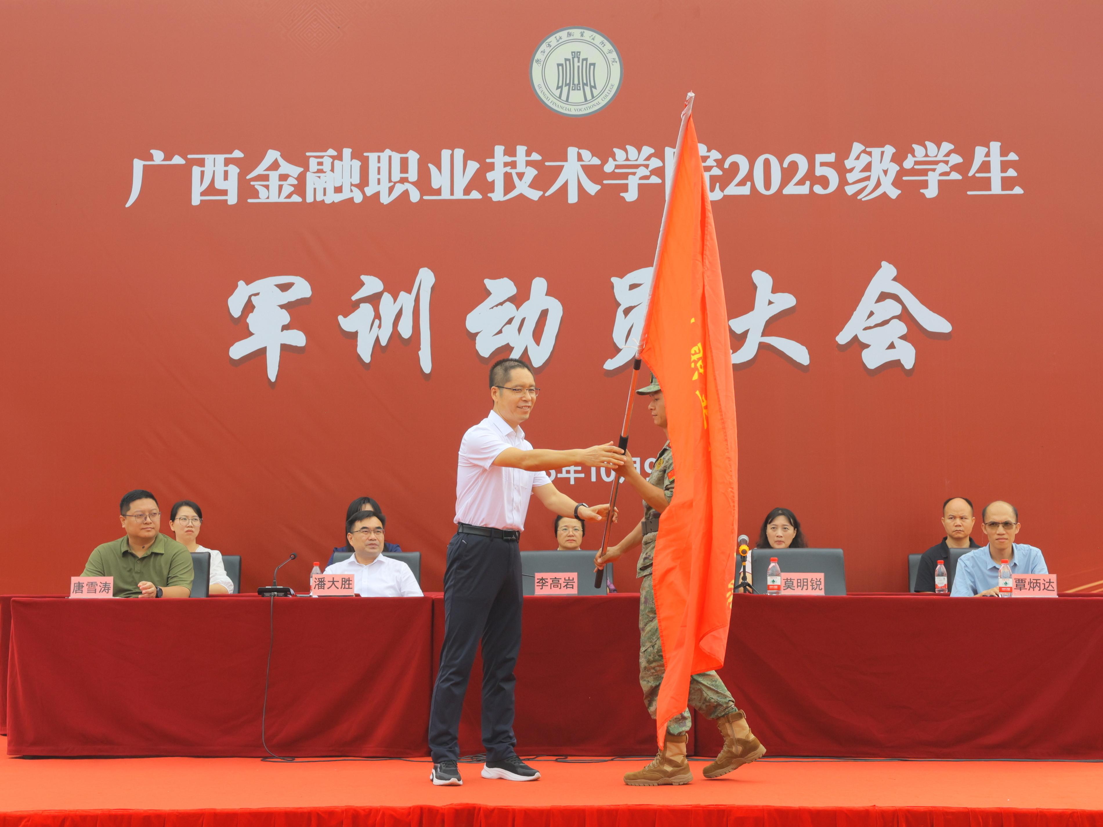 会上,李高岩书记和莫海燕校长向承训单位授军训团团旗,鲜红的旗帜高高飞扬,万象城官网2025级学生军训正式拉开帷幕。