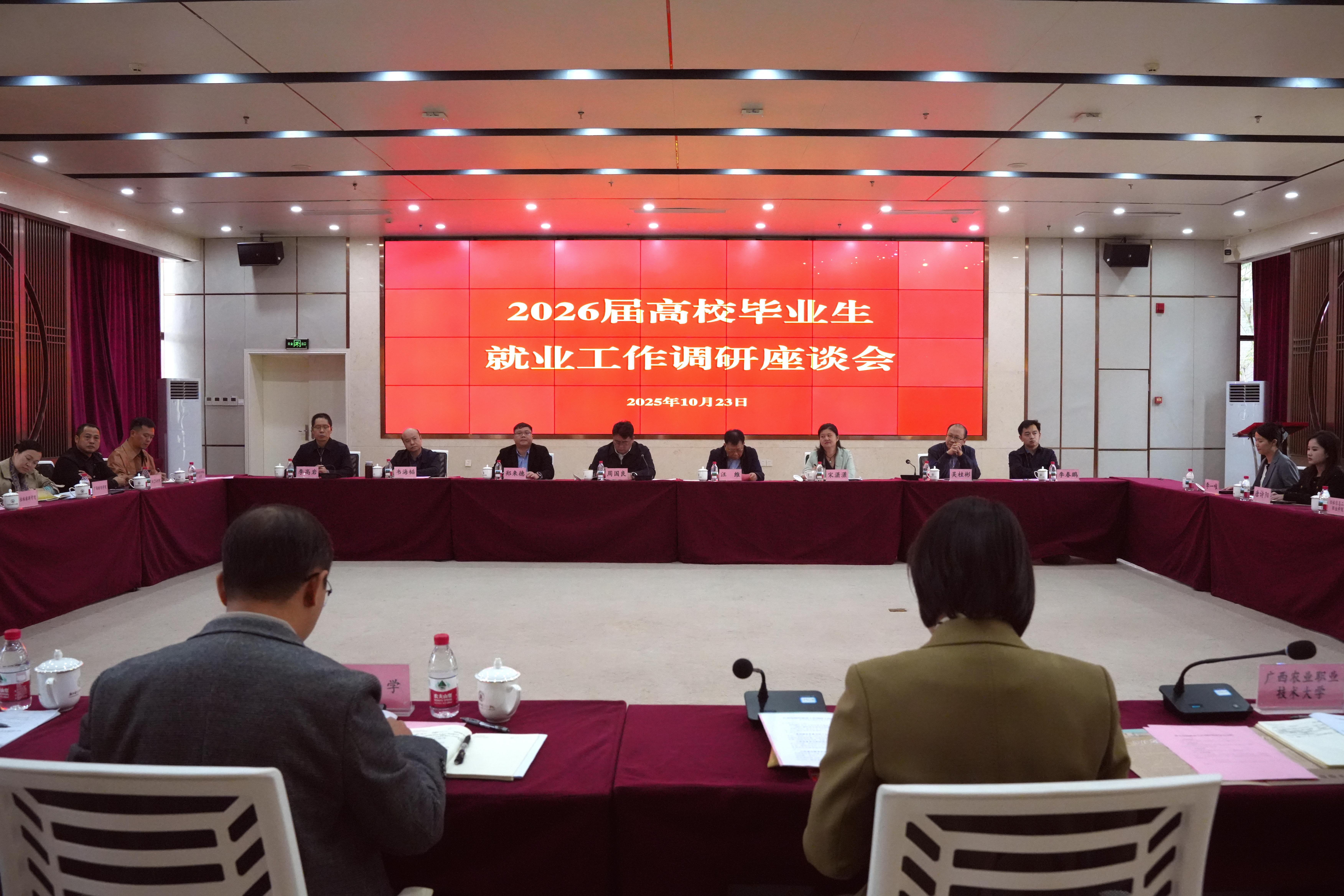 自治区教育厅有关处室负责同志,自治区高等学校毕业生就业创业指导中心有关同志、广西大学等20所高校有关业务部门负责同志参加会议。