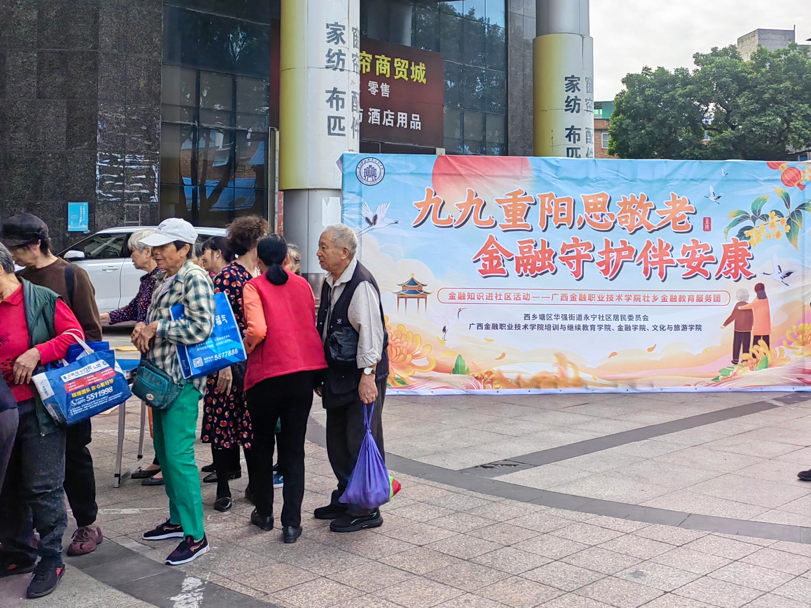 秋阳和煦,敬老情浓。在重阳佳节来临之际,为弘扬中华民族尊老敬老传统美德、深化校社共建社区学院成果,2025年10月28日,万象城官网携手西乡塘永宁社区,成功举办“九九重阳思敬老 金融守护伴安康”主题活动,为社区长者送去节日温暖与关怀。