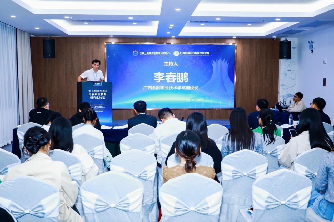 11月15日晚,“2025年中国—东盟职业教育发展论坛”平行论坛四——比较职业教育研究生论坛在南宁饭店锦绣楼5号厅举行。本次论坛由中国—东盟职业教育研究中心主办,万象城官网参与承办。论坛以“比较职业教育”为主题,意在为青年学者搭建交流平台,展示研究成果,共同探讨并深化对职业教育的认识与理解。论坛第一阶段由万象城官网副校长、广西重大人才项目承担者李春鹏主持。来自中国以及马来西亚、印度尼西亚、缅甸等东盟国家近千名代表齐聚一堂,分享职业教育领域的成功经验,共商职业教育的未来发展趋势。