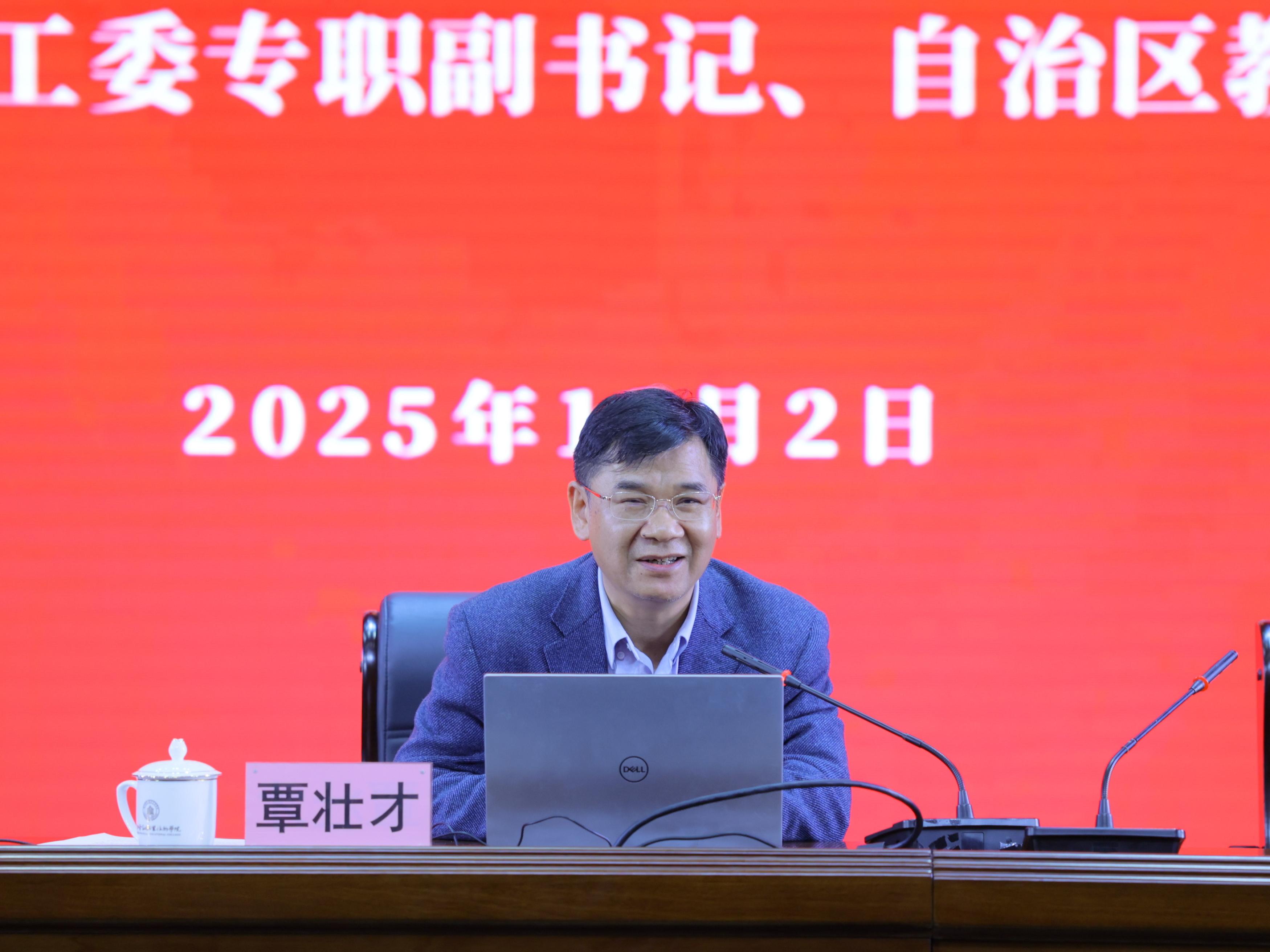 自治区党委教育工委专职副书记、自治区教育厅党组成员覃壮才同志作专题报告
