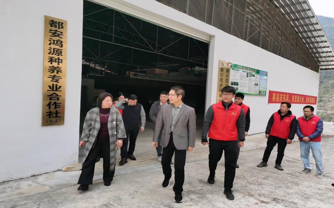 学校领导与群众交流探讨桑蚕产业发展