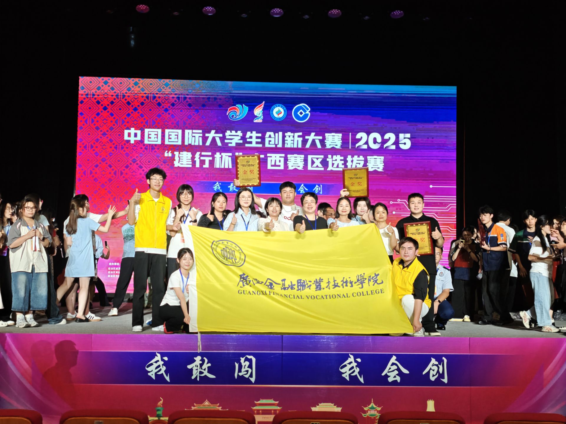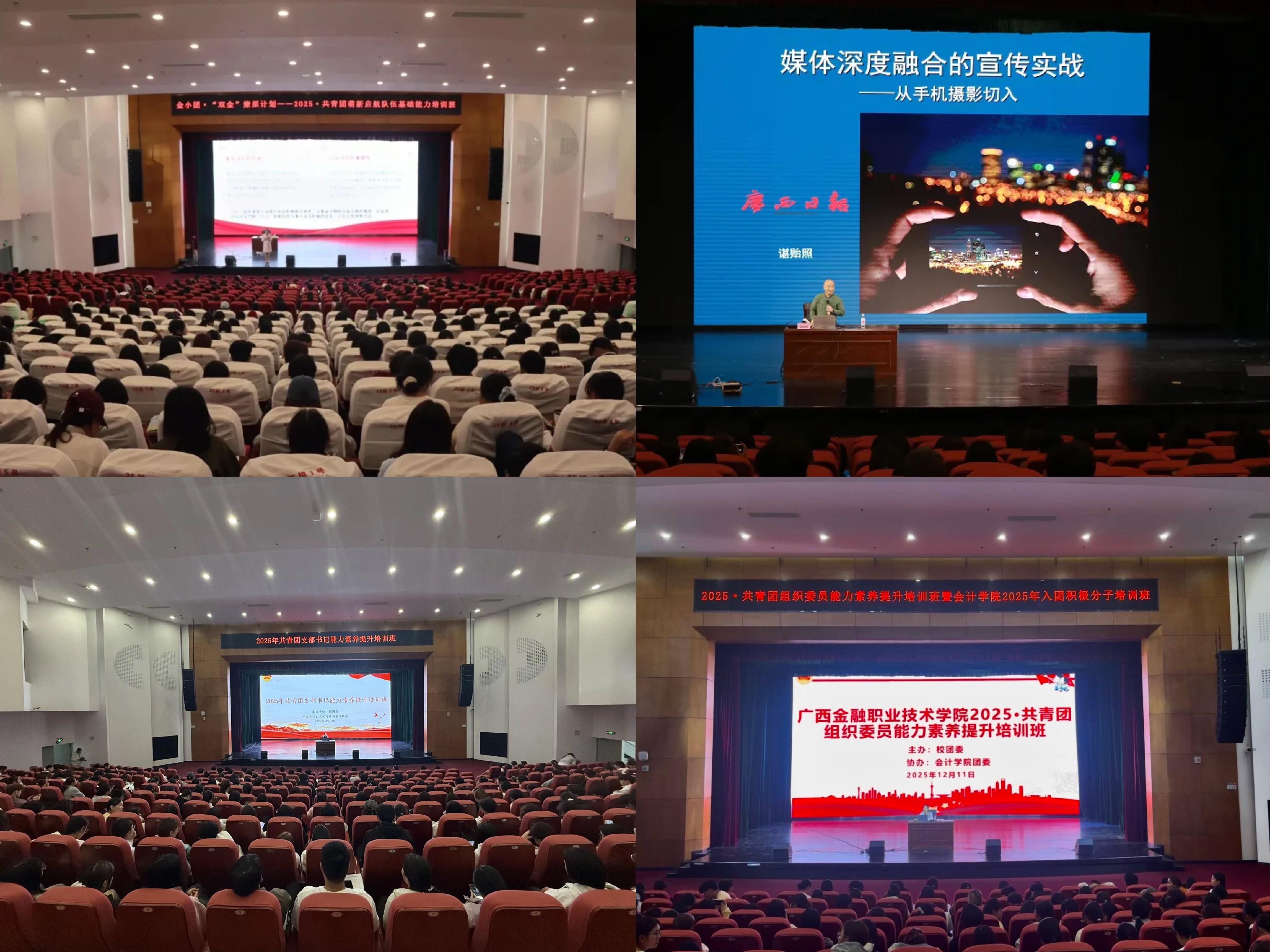 打造“金子”大众参与工程,构建“金”字品牌矩阵,厚植校园文化底蕴,推动第二课堂与第一课堂深度融合。“金韵” 合唱团斩获第二届 “陆海欢歌” 民歌合唱周金奖、基层文艺会演三等奖。“金炫”啦啦操队参加“壮美广西”2025年青少年健身操舞技能大赛荣获2个一等奖、广西壮族自治区第十四届学生运动会双人花球赛项勇夺高职高专组亚军。12月,开展2025 年 “金字” 文化品牌建设成果汇报演出(“金韵” 合唱团与 “金炫” 啦啦操队专场演出)。