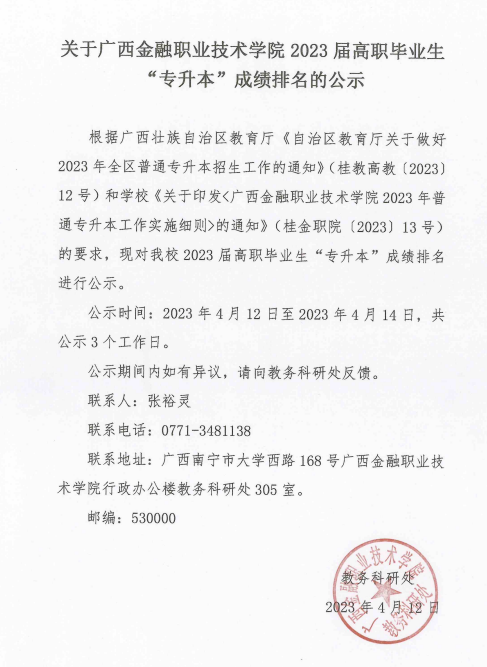 关于awc77万象城官网2023届高职毕业生”专升本“成绩排名的公示.pdf