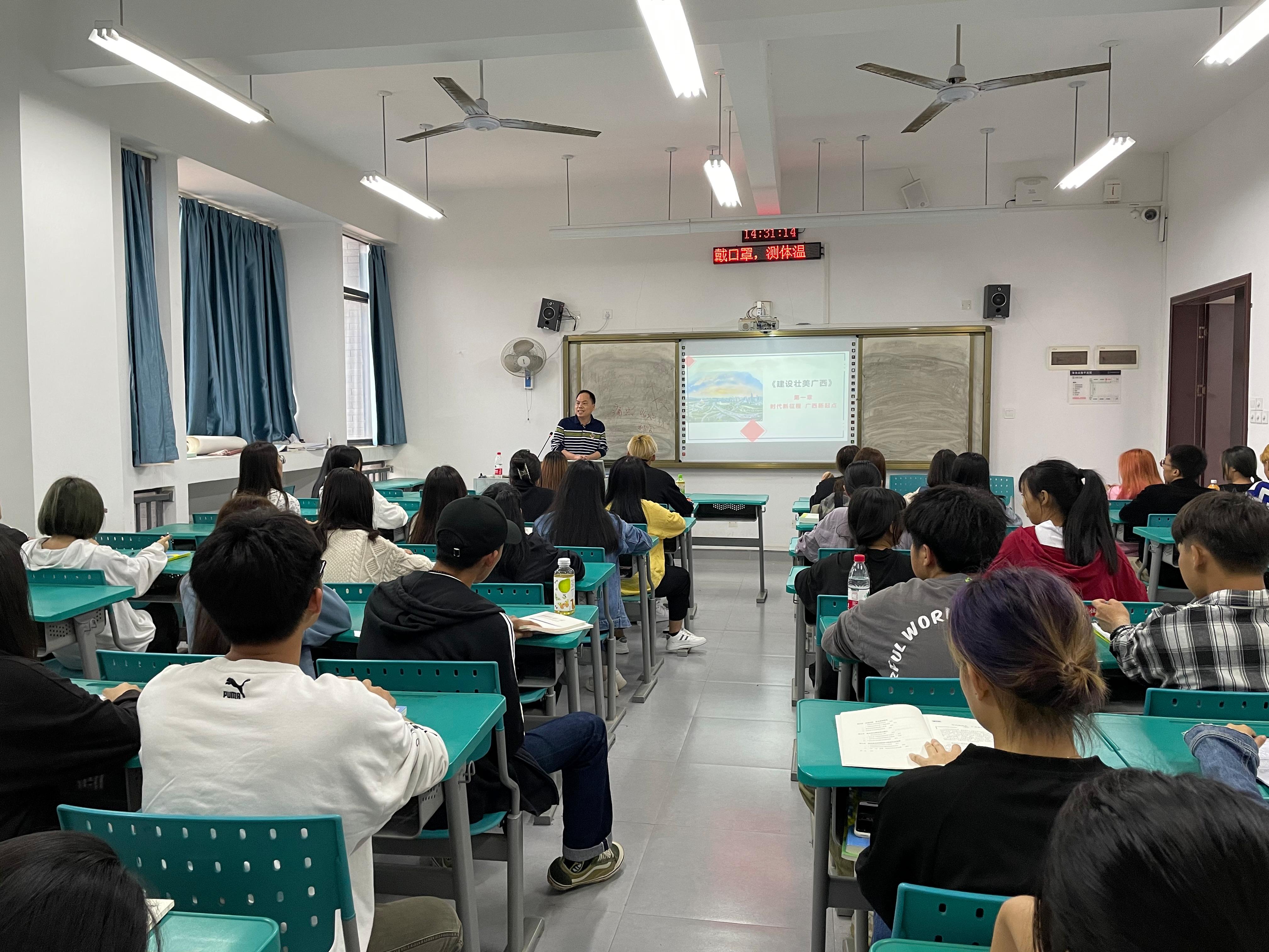 学校领导围绕“建设壮美广西——时代新征程 广西新起点”和“中国共产党为什么能”两大主题为同学们进行了一次生动的党史学习教育,深厚的理论知识、丰富的实践案例和深入浅出的语言,受到了学生的喜爱和欢迎。