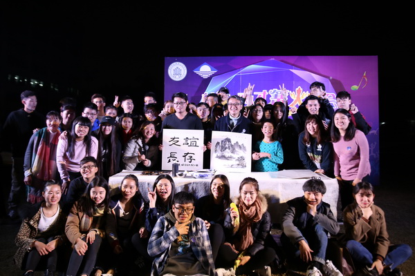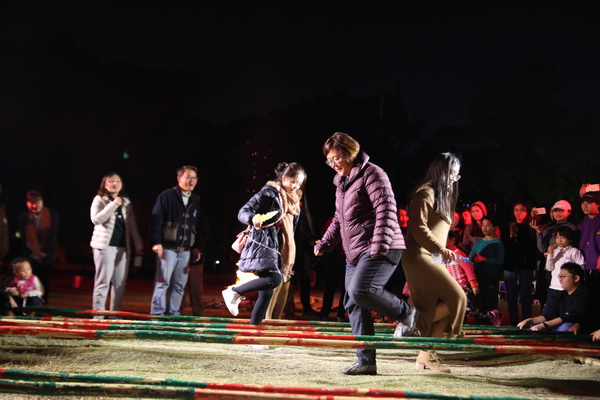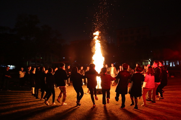 12月22日晚,万象城官网在东校区体育场举行桂台青年篝火联谊会。台湾德明财经科技大学的20名青年学生代表及带队老师,与万象城官网师生代表共度冬至节。院长莫海燕亲临现场与学生同乐,并为篝火晚会点火。晚会通过竹竿舞、板鞋接力、抛绣球、拜火舞等民族特色活动,让两校学生体验两岸传统文化,加深两校学生彼此了解,增进交流。