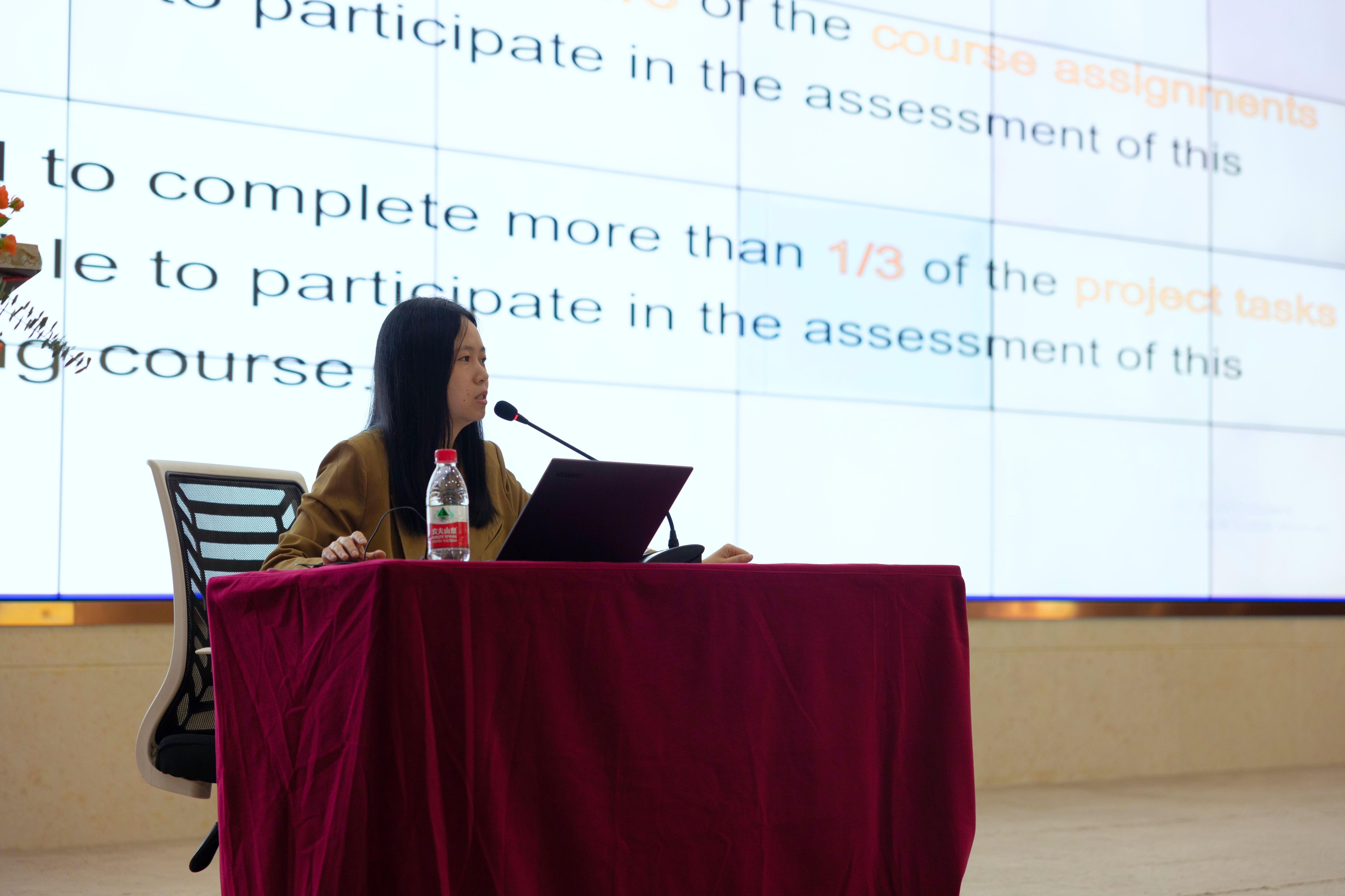 开学典礼结束后,学校进行入校教育。由教务科研处曾静老师向国际学生介绍万象城官网关于国际学生的教学管理措施。由学工处学生科蒋凯老师向国际学生介绍校园管理方面的内容。