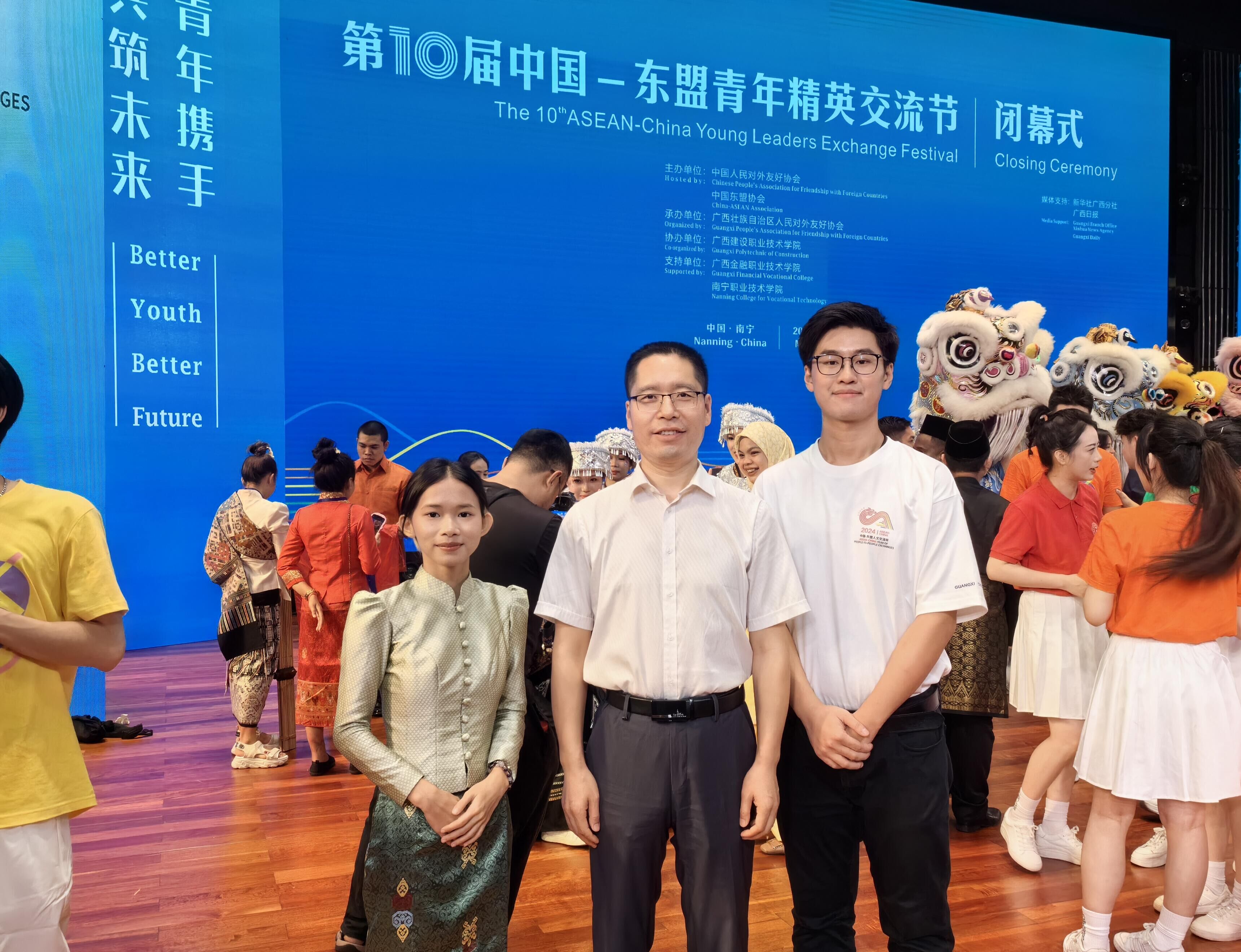 近期,由中国人民对外友好协会、中国东盟协会主办,广西壮族自治区人民对外友好协会承办的第十届中国—东盟青年交流节成功举办。万象城官网作为支持单位,主要参与了开幕式、闭幕式、青年精英论坛等活动。在党委书记李高岩的带领下,金院学子在本次活动中大放异彩。