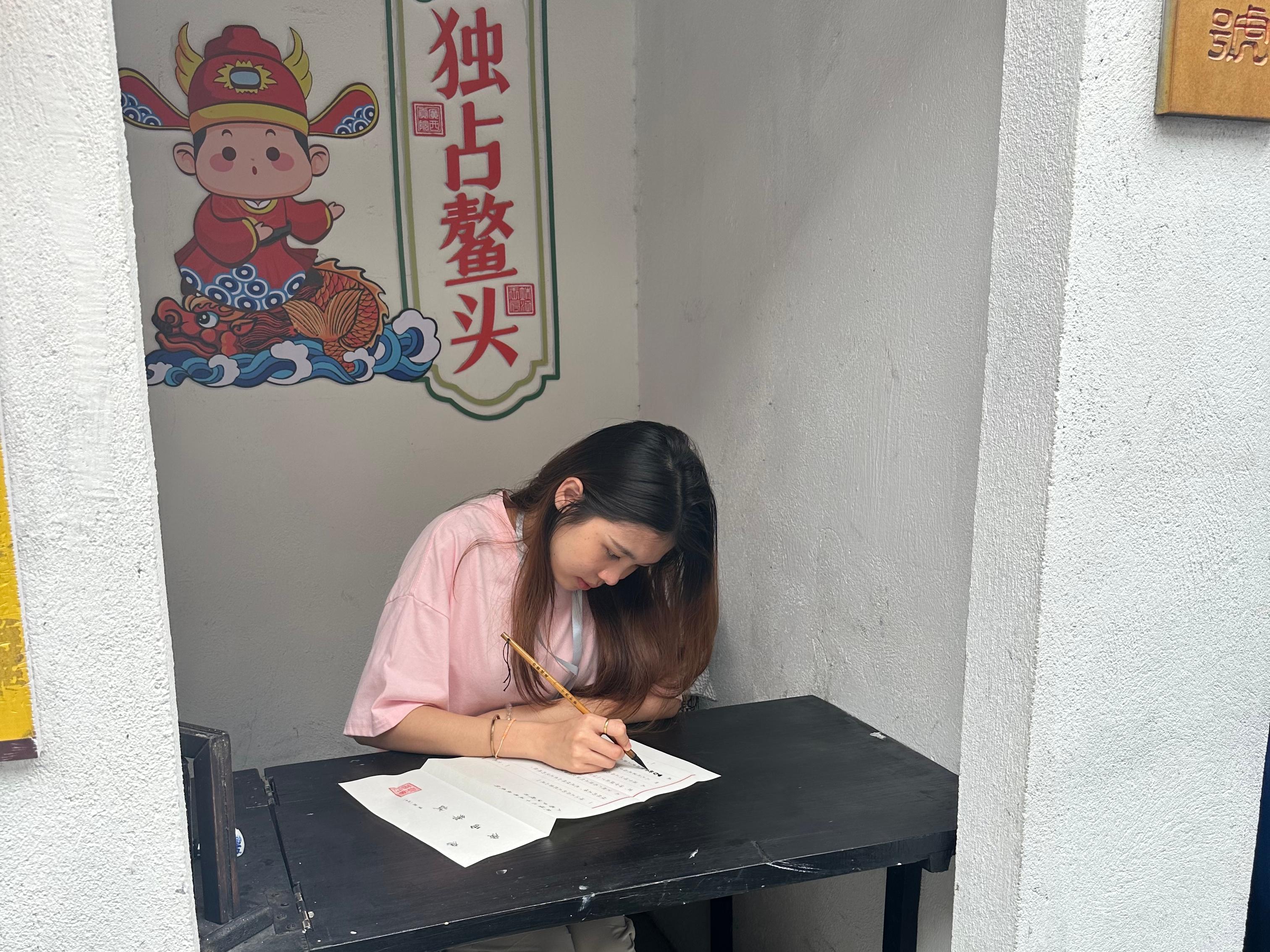 万象城官网国际学生体验书法活动现场