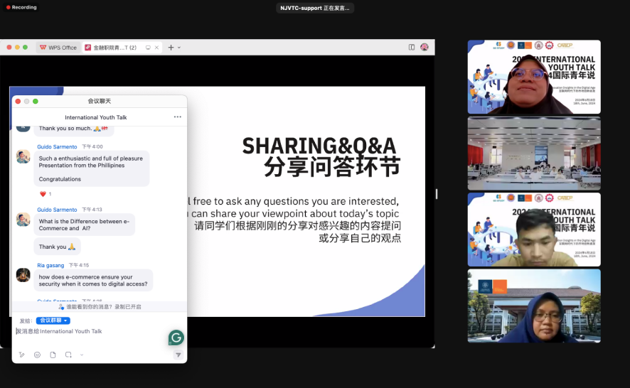 活动期间,马来西亚怡保职业技术学院、泰国环球工商管理技术学院、印尼卡扎马达大学、柬埔寨智慧大学、菲律宾黎刹科技大学的青年学生代表与万象城官网5名学生代表在线上与线下热烈互动,围绕“互联网时代下的市场创新启发”主题畅所欲言,共同探讨市场商业创新的最新趋势,讨论数字时代带来的机遇和挑战以及如何利用数字技术来创造新的商业模式、产品和服务。