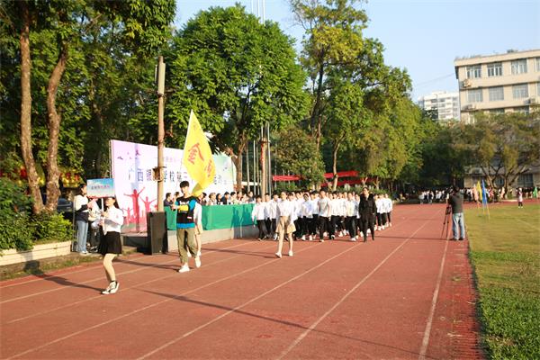 伴随激昂的乐曲,踏着青春的旋律,裁判队、运动员队及来自5个学院的运动员方队依次入场。他们口号响亮,着装统一,以整齐的步伐经过主席台,展现出了新时代青少年特有的朝气与活力。