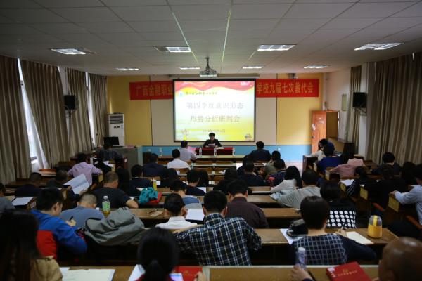 12月6日下午,学院在东校区电教一楼多媒体教室召开了第四季度意识形态形势分析研判会。学院党政领导及全体科级以上干部、党支部委员、团委委员、各系团总支书记参加了会议。
