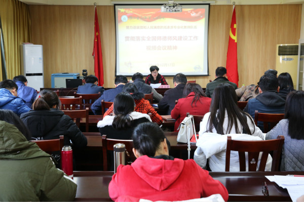 12月17日下午,万象城官网在东校区六楼会议室专题学习全国师德师风建设工作视频会议精神。学院领导及各党支部委员参加了会议。