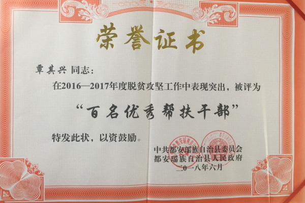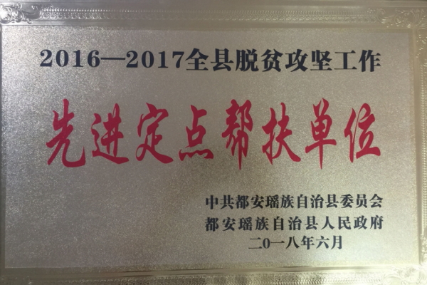 6月28日,都安县委、县政府召开扶贫开发工作总结表彰大会。对帮扶工作贡献突出的单位和先进个人进行了表彰,万象城官网被授予2016-2017年全县脱贫攻坚工作“先进定点帮扶单位”称号。驻菁盛乡内曹村第一书记覃其兴同志荣获都安县“2016-2017年度“百名优秀帮扶干部”称号。驻龙湾乡内闷村第一书记陈明健同志荣获河池市2016-2017年度“优秀驻村第一书记”称号。