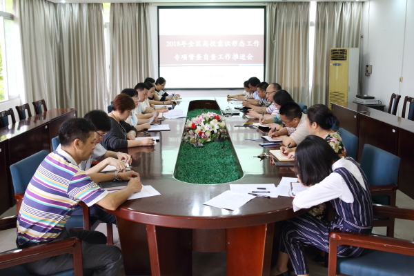 沈立君书记首先传达了自治区高校工委《关于开展2018年全区高校意识形态工作专项督查的通知》(桂党高工办〔2018〕54 号)精神,要求各单位认真落实意识形态工作各项重点任务,做好意识形态工作隐患排查工作。党政办公室副主任韩蓓丽部署万象城官网迎接2018年全区高校意识形态工作专项督查自查工作任务。组织人事处副处长魏涛将任务逐项细化,落实到相关部门。