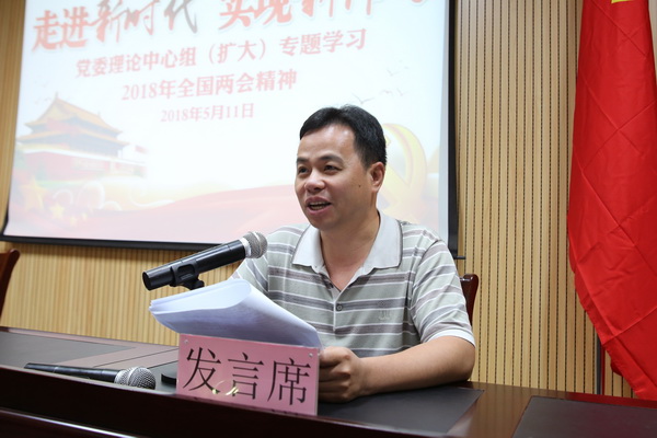 沈立君书记领学了习近平总书记在第十三届全国人民代表大会第一次会议上的讲话、2018年政府工作报告以及中华人民共和国宪法修正案、深化党和国家机构改革方案等重要内容。