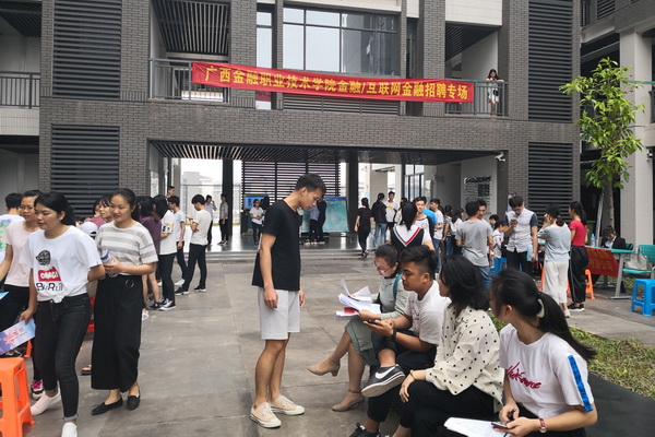 此次参会的有中国大地财产保险股份有限公司、广西宝鑫投资有限责任公司、南宁乐晟资产管理有限公司、广西及时雨金融服务有限公司等10家企业,提供优质对口就业岗位数200个。