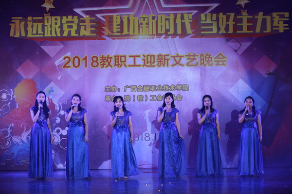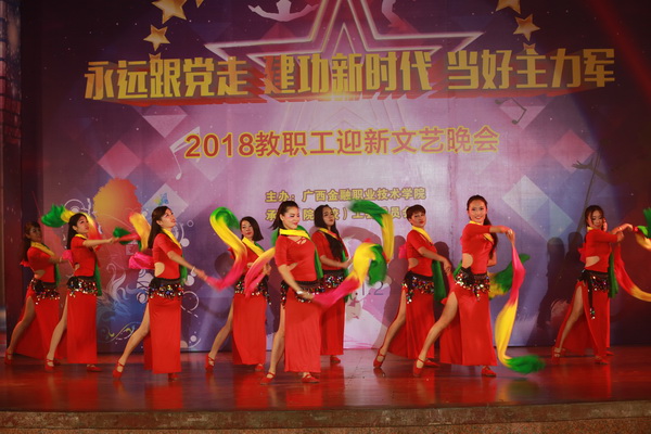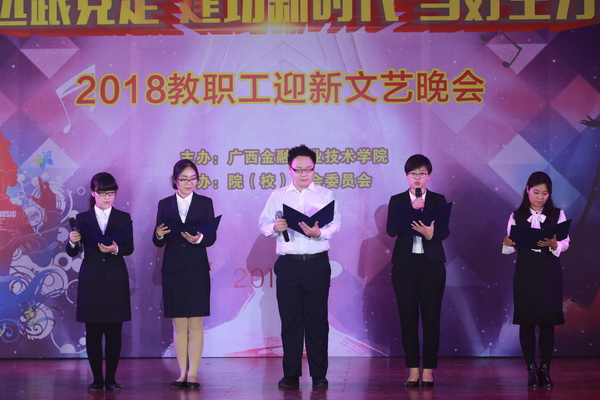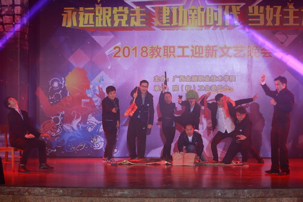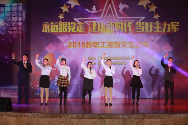1月2日晚,awc77万象城官网(广西银行学校)以“永远跟党走,建功新时代,当好主力军”为主题的2018年教职工迎新文艺晚会在东校区大礼堂隆重举行。学院领导及全体师生参加并观看了晚会。