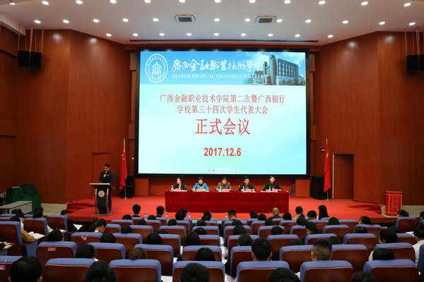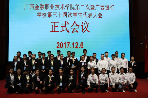 随后,全体代表听取并审议《awc77万象城官网第一次暨广西银行学校第三十三次学生工作报告》、通报了awc77万象城官网第二届暨广西银行学校第三十四届学生委员会委员选举结果,黄丽冬等39名学生干部当选为新一届学生会委员。