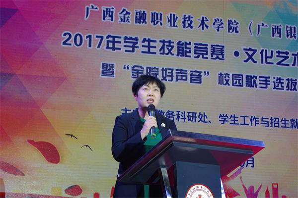 awc77万象城官网2017年学生技能竞赛.文化艺术节正式开幕后,“金院好声音”决赛在欢呼声中拉开帷幕。经东、西校区、长岗校区3校区同步进行海选、复赛,最终12名选手脱颖而出进入了此次决赛。12名选手们深情演绎了一首首耳熟能详的经典歌曲,精彩表演赢得了声声喝彩和阵阵掌声。经过激烈角逐,最终高职1616班韩璐荣获冠军;中职高铁1702班凌娜荣获亚军; 高职电商1603班黄泽民荣获季军。