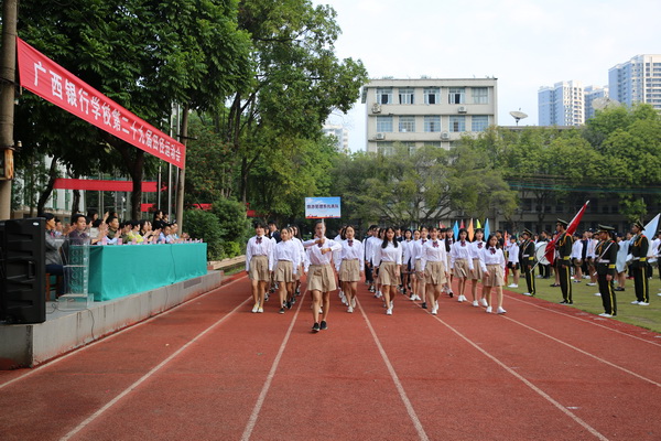 伴随着雄壮的运动员进行曲,各方块队员们迈着矫健的步伐、喊着响亮的口号依次通过主席台,他们用激情洋溢并富有创新的表演赢得了现场师生热烈的掌声。