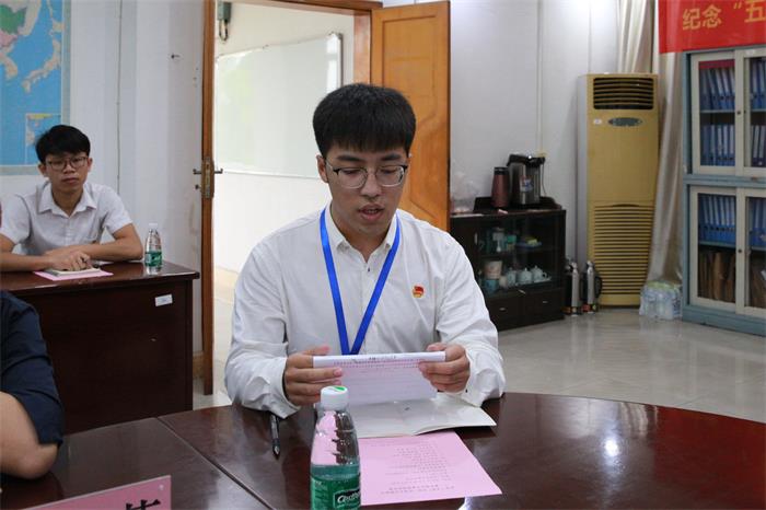 随后,团委书记周海峰在会议中发言。他表示,此次座谈会既是一次团日活动,也是一次党日活动,十分有意义。会上,周海峰书记代表校团委向广大师生提出三点倡议:一、坚定理想信念,争做有追求、有抱负的时代青年;二、练就过硬本领,进一步加强学习、丰富知识;三、勇于承担基层工作重任,用无私奉献精神干出无愧青春的优秀业绩。