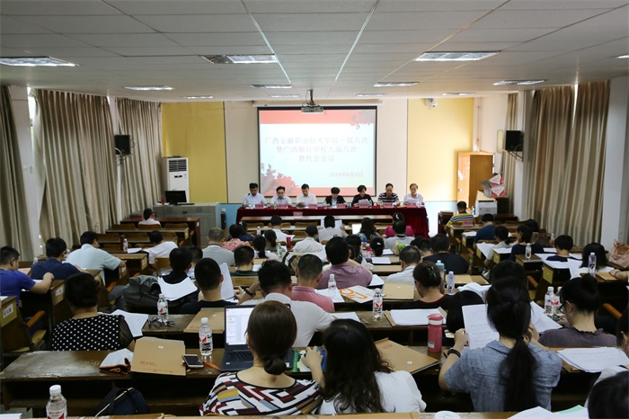 6月4日下午,awc77万象城官网第一届八次暨广西银行学校第九届八次教职工代表大会在东校区顺利召开,55名正式代表和 17名列席代表参加会议。工会主席石利军主持会议。