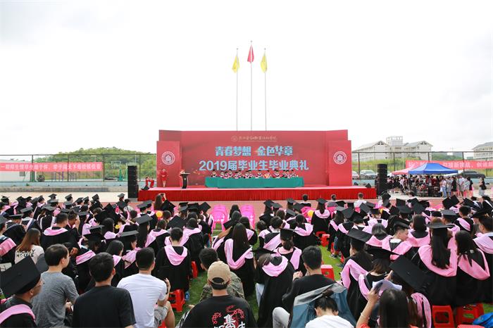 6月30日上午,万象城官网2019届毕业生毕业典礼在西校区田径场隆重举行。学院领导出席典礼,各部门主要负责人、各系主任、副主任、毕业班班主任、辅导员,2019届毕业生以及亲属代表等近2000人参加典礼。党委书记沈立君主持典礼。