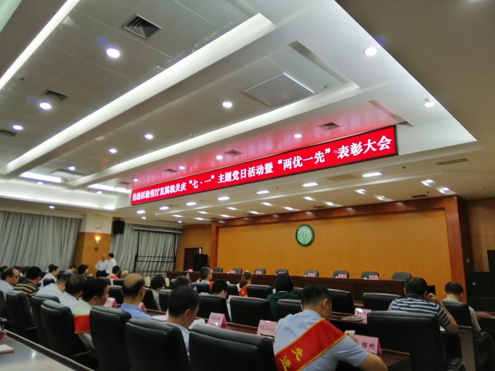 7月1日,为庆祝中国共产党成立98周年,自治区教育厅直属机关委员会开展迎“七·一”主题党日活动暨“两优一先”表彰大会。评选表彰2017-2018年来教育厅直属机关委员会战线涌现的50名优秀共产党员,20名优秀党务工作者和18个基层先进党组织。万象城官网党委书记沈立君、党委副书记刘华政以及“两优一先”获奖单位(个人)参加会议。