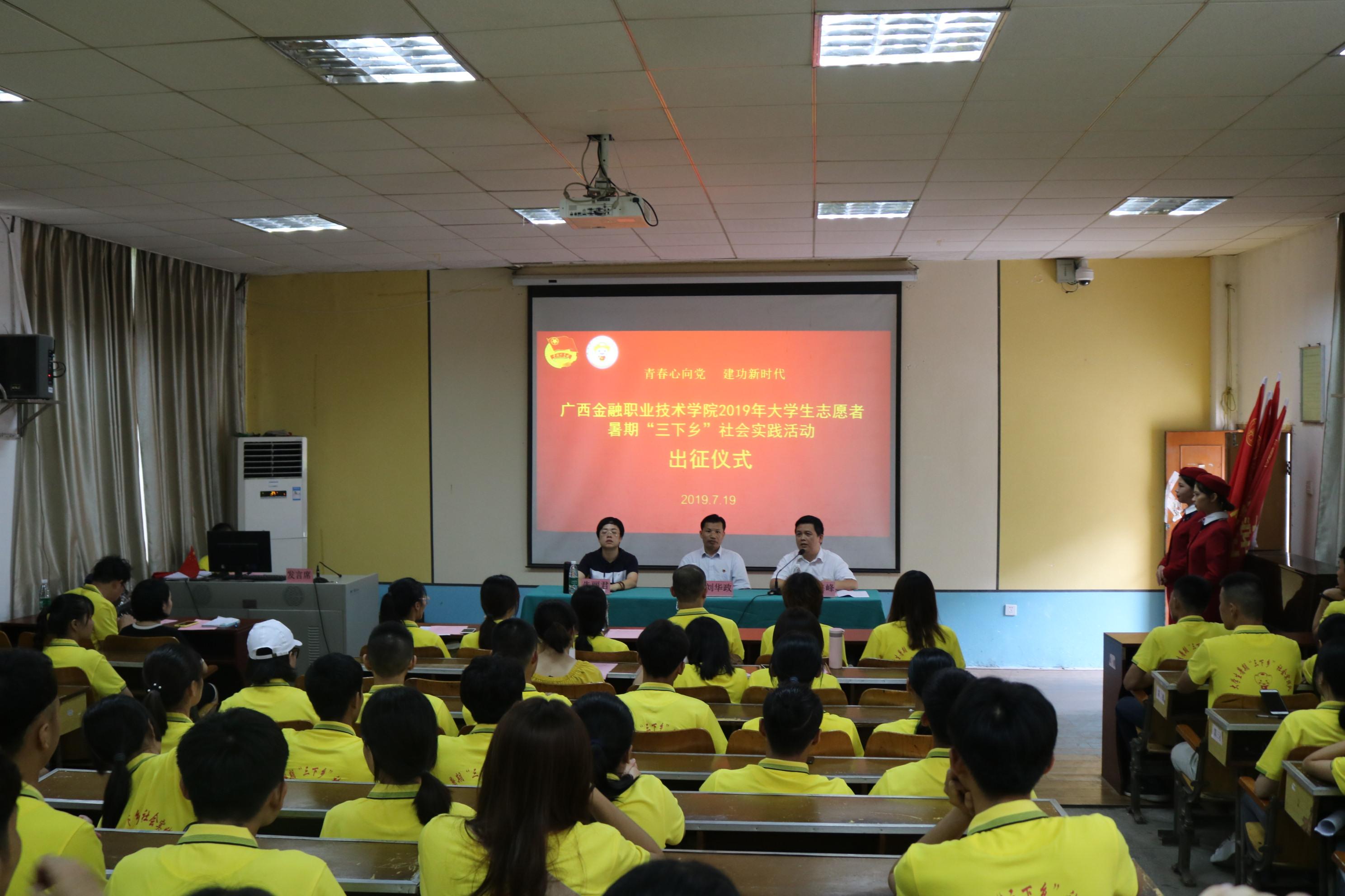 7月19日上午,“青春心向党·建功新时代”awc77万象城官网2019年大学生志愿者暑期“三下乡”社会实践活动出征仪式在电一教室举行,学院党委副书记、纪委书记刘华政出席并讲话。