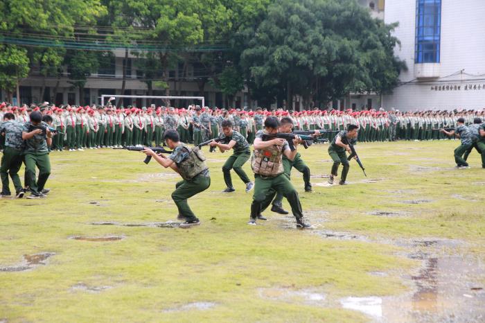 会操表演在庄严的升旗仪式中拉开了序幕。东校区由沈立君书记、唐立达团长检阅,长岗校区则由刘华政副书记、李愉团长检阅军训成果。两个校区的受训连队伴随着《中国人民解放军进行曲》的响起,踏着坚定的步伐,喊着响亮的口号,以饱满的热情和磅礴的气势依次通过主席台。整齐划一的步伐,气势昂扬的精神面貌充分展现了14天军训的成果。紧接着由学生进行了军体拳表演和战术表演。随着拳拳铿锵、声声怒吼以及实战现场的模拟,学生们过硬的身体素质和精彩的表演让现场响起雷鸣般的掌声,纷纷大呼过瘾。