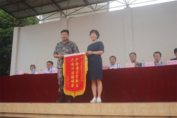 沈立君书记为广西陆战国防教育训练基地唐立达团长颁发锦旗