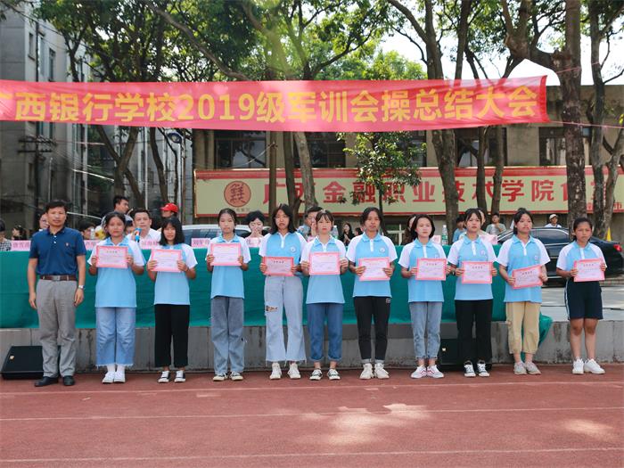 沈立君书记在军训会操总结致辞中说,通过军训和纪律教育,同学们获得了新的生活体验,心胸得到开阔,视野得到拓展,意志得到磨练,行为得到了矫正。她提出三点希望,一是不忘初心,做一个勇于担当的银校人;二是不畏挑战,做一个敢于追梦的银校人;三是永怀善心,做一个心存感恩的银校人。军训是入学的必修课,希望全体同学以本次军训为起点,把军人的优良作风,把军训时锤炼的精神品格保持下去,满怀激情地投入到接下来的学习生活中。