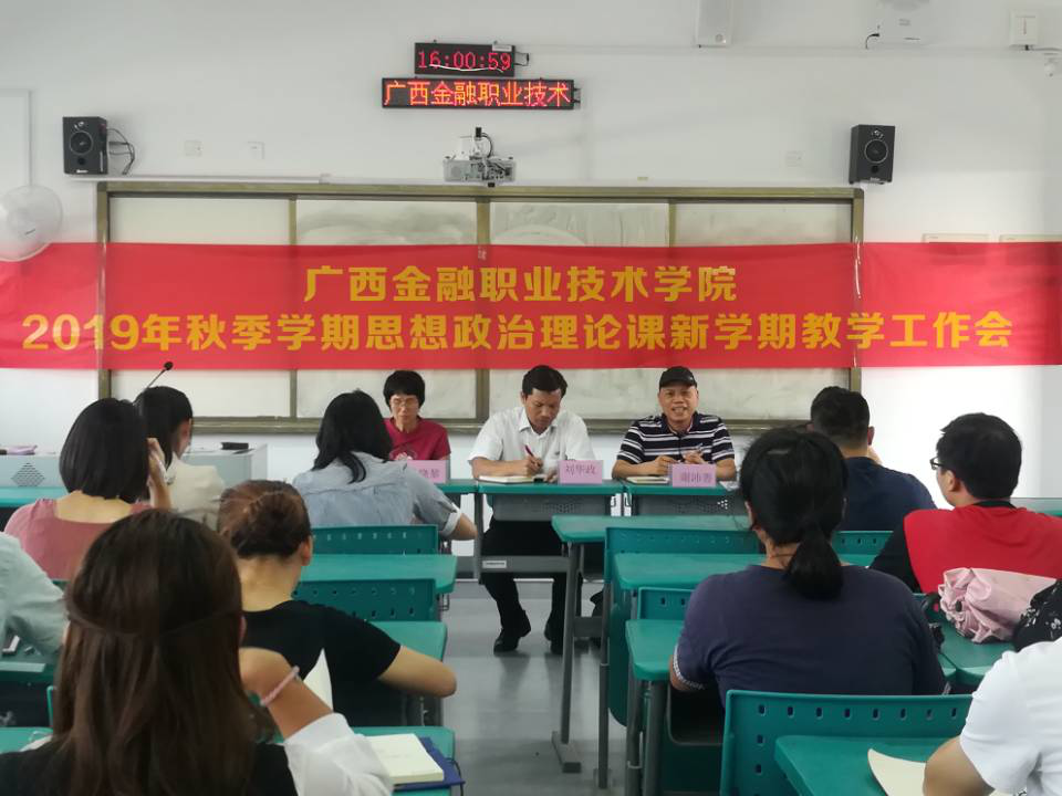 9月23日下午,万象城官网社科部在第二教学楼A603教室召开2019年秋季学期思想政治理论课教学工作会。学院党委副书记、纪委书记刘华政、副院长谢沛善出席会议,社科部全体教师、校内行政兼课教师、校外聘用任课教师参加会议。会议由社科部主任兰晓黎主持。