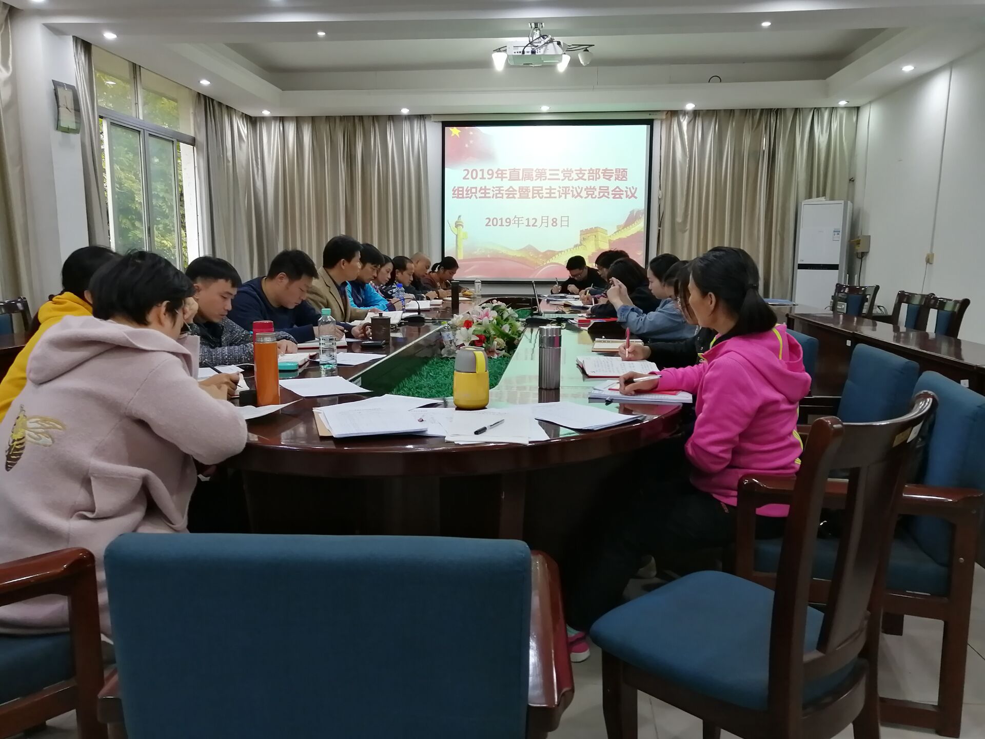 12月8日下午,根据万象城官网“不忘初心、牢记使命”主题教育领导小组相关部署要求,直属第三党支部在东校区五楼会议室组织召开“不忘初心、牢记使命”主题教育专题组织生活会。会议由支部组织委员陆剑春同志主持,并代表支委向大会报告支部开展“不忘初心、牢记使命”主题教育情况与检视问题以及整改措施。
