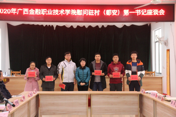 1月15日,学院党委书记沈立君带队到都安县龙湾乡走访慰问万象城官网派出的6位第一书记,通过召开座谈会和深入实地调研的方式进一步了解第一书记工作、生活等情况。学院党委副书记、纪委书记刘华政、党委委员、相关处室、系部领导及龙湾乡党委书记牙韩壮等领导参加座谈会。会议由学院党委副书记、纪委书记刘华政主持。