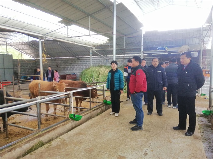学校领导察看养牛产业发展