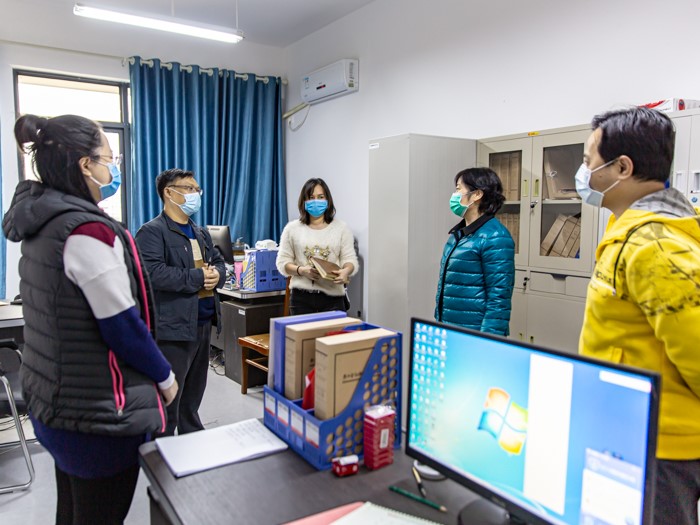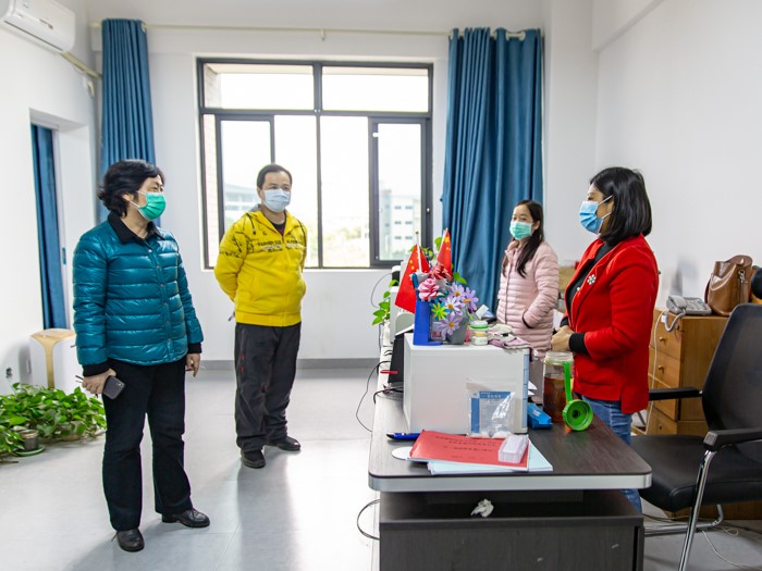 沈立君书记一行走访了各行政部门和教学系部办公室,每到一处,沈立君书记都与在岗员工深入交流并致以亲切慰问。她详细询问了各部门在返校到岗过程中遇到的困难,同时对工作人员的身体状况、采取的疫情防控举措以及返岗员工的人数、状况进行了深入了解。受访人员纷纷表示,将尽力克服返校到岗伊始遇到的问题和困难,保质保量完成工作任务,确保学校顺利开学。