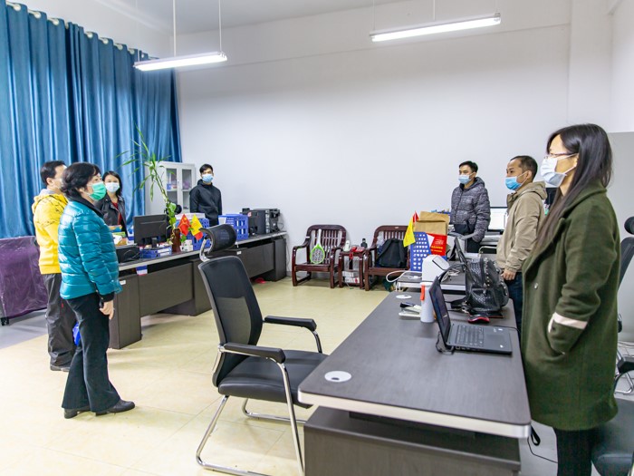 4月1日上午,awc77万象城官网(广西银行学校)部分教职员工正式返校到岗上班。学校党委书记沈立君带队走访各部门办公室,了解返校第一天工作进展并慰问在岗教职员工。党政办公室、组织人事处相关工作人员一同参加走访。