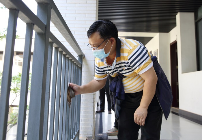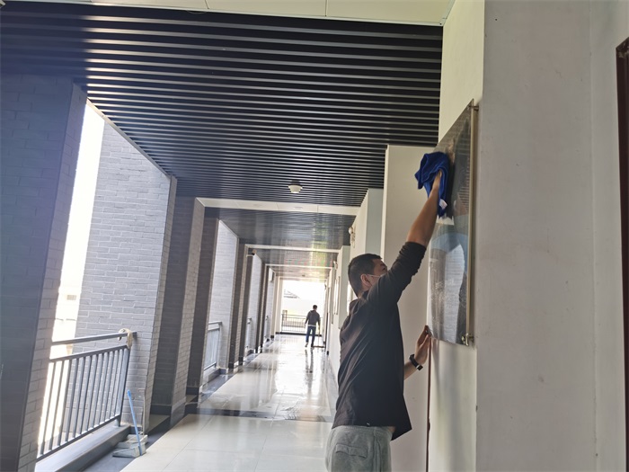 擦拭教学楼护栏
