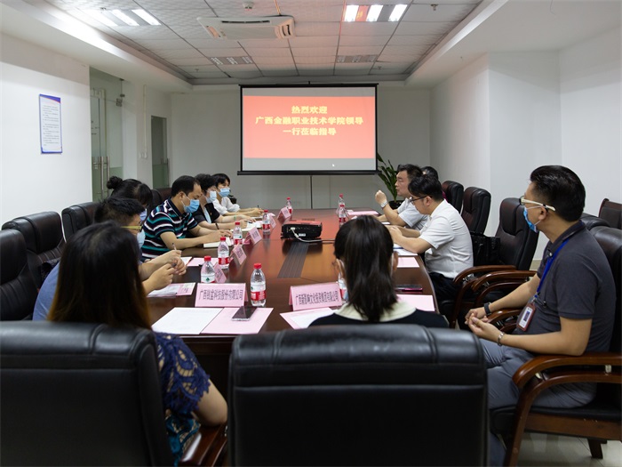 沈立君书记一行还参观了南宁市互联网金融行业协会、广西信金服科技有限公司等企业,为进一步校企合作奠定基础。