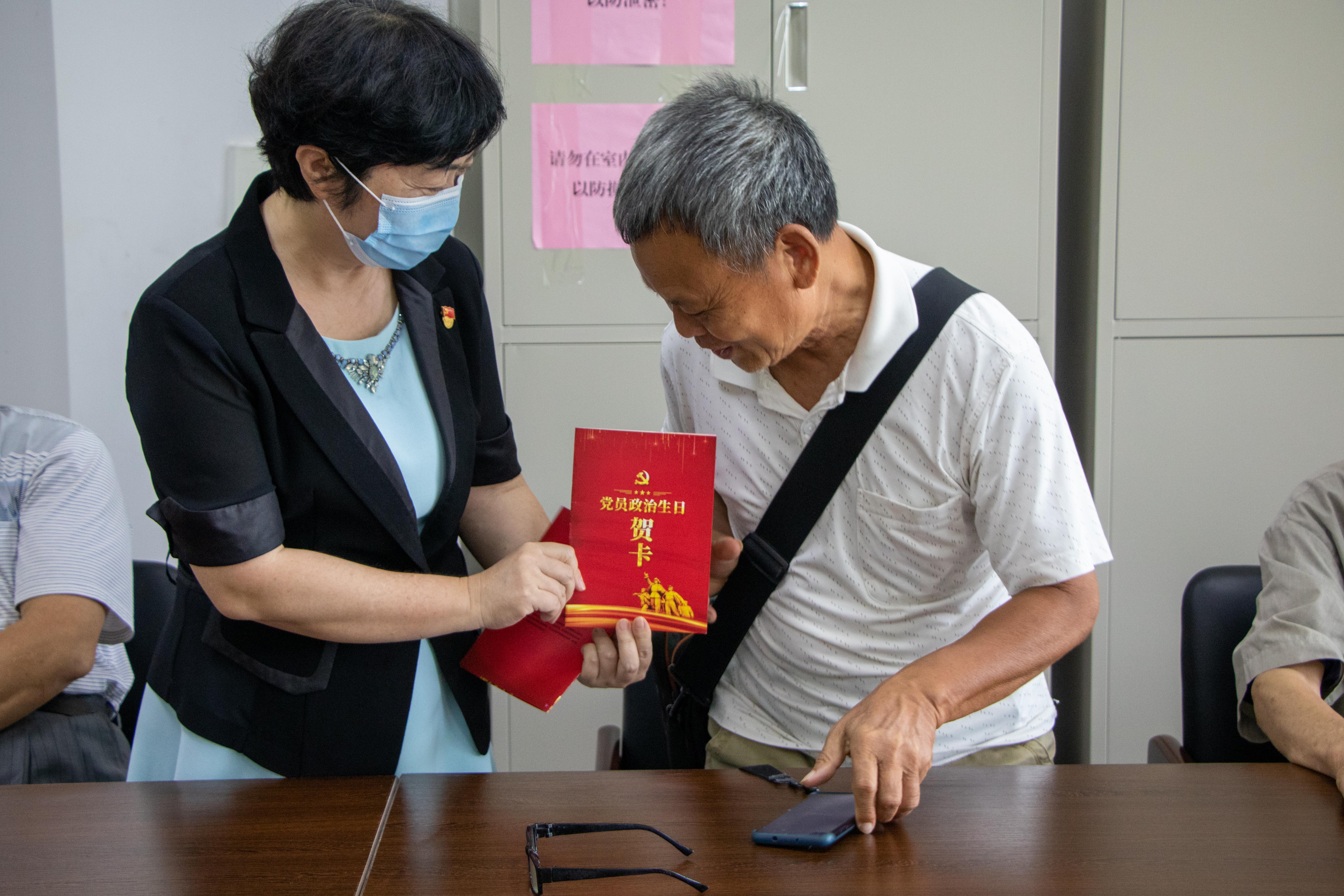 沈立君书记为老党员送上党员政治生日贺卡