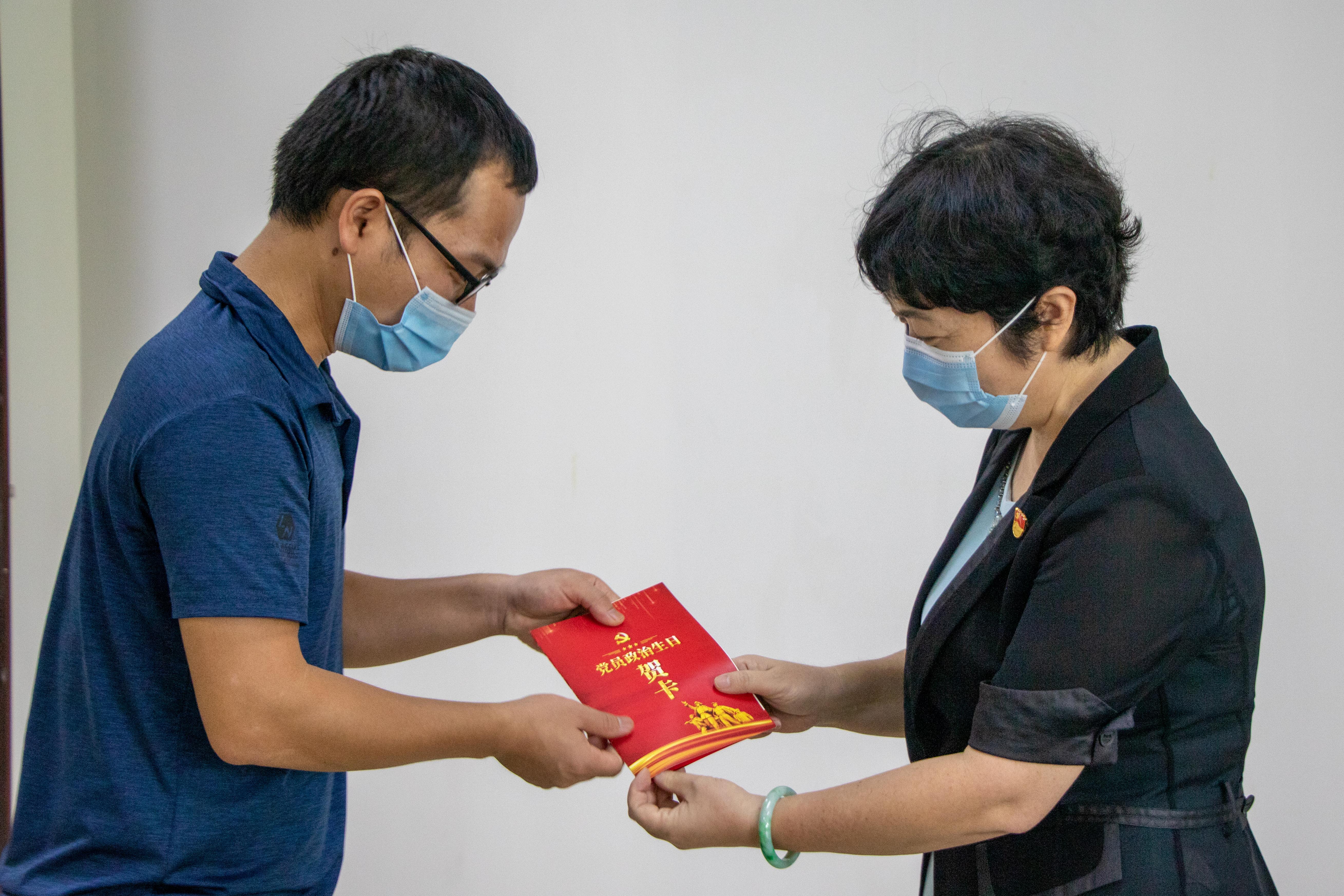 沈立君书记为直属第一党支部党员送上党员政治生日贺卡