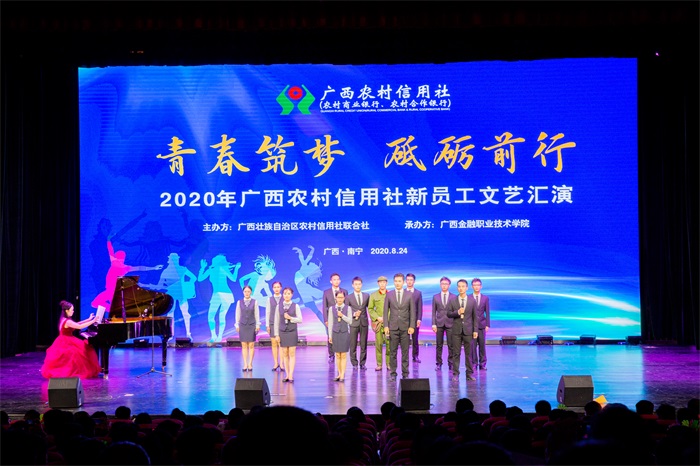 8月24日晚,全区农村合作金融机构2020年新员工培训班文艺汇演在万象城官网西校区国际会议中心精彩上演。万象城官网教职员工、自治区农村信用联社的领导和员工代表以及参加培训的900余名学员欢聚一堂,共同欣赏了一场精彩纷呈的文艺盛宴。晚会全程同步进行现场直播,吸引了6万多人在线观看。